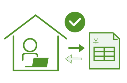 テレワークを実現郵送で届く紙の請求書も受領からスキャンまで代行。「BtoBプラットフォーム 請求書」上で確認から承認まで完結できるため、請求書処理のための出社は不要になります。