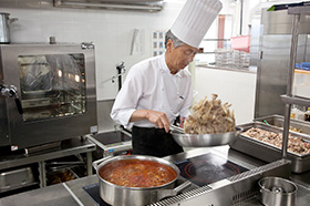 献立を作るのは商品企画部が担当しており、和・洋・中華の専門家が作ったオリジナルレシピで、栄養バランスを考え、手作り感をプラスして明日も食堂で食べようと思っていただけるものを心がけています。