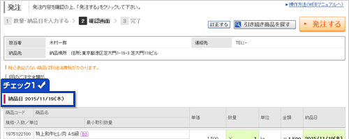 4納品日を確認し、変更がある場合は入力します。(初期値は最短納品日です)