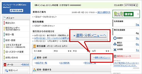 「運用・分析メニューへ」をクリックします。