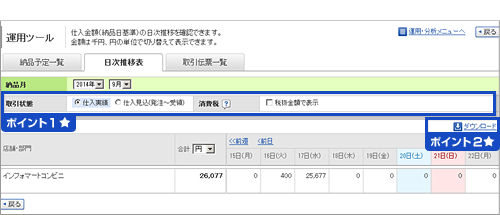 仕入実績を日別に確認することができます。